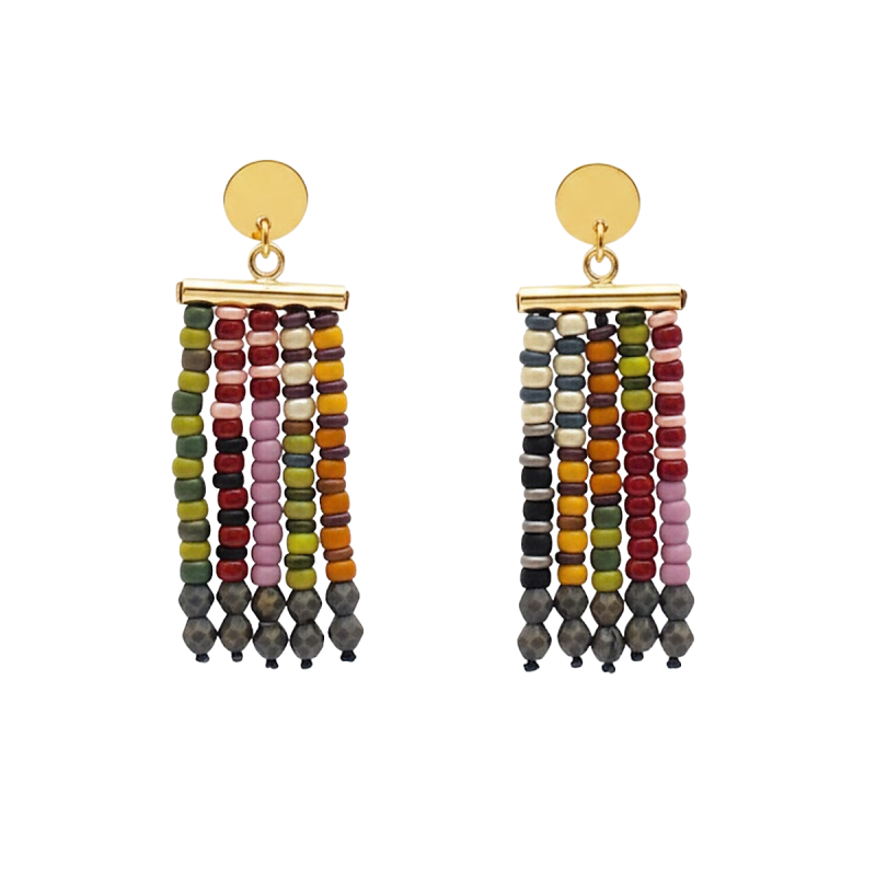 The Telúricos y Primitivos Earrings are an exclusive piece inspired by the exhibition at the Carmen Thyssen Museum Málaga. Each pair is handcrafted with small crystal beads individually strung, creating a luminous and refined texture that reflects the earthy energy and essential aesthetic of the primitive.