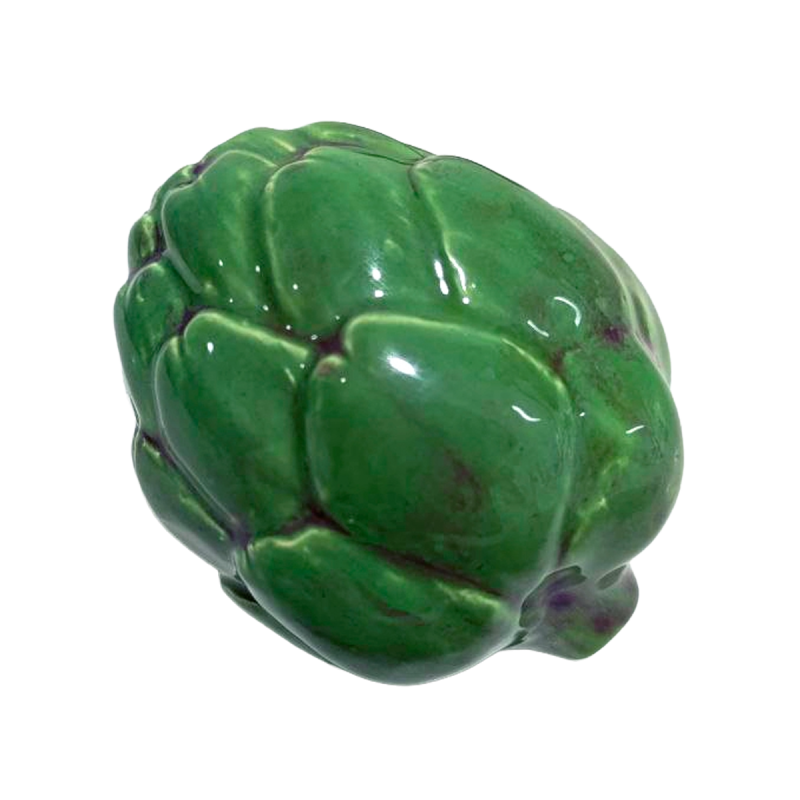 Alcachofa decorativa realizado en cerámica moldeada y pintada a mano, con maduración del esmaltado por cocción a 980 grados. El proceso de producción artesanal proporciona a cada pieza un carácter único.