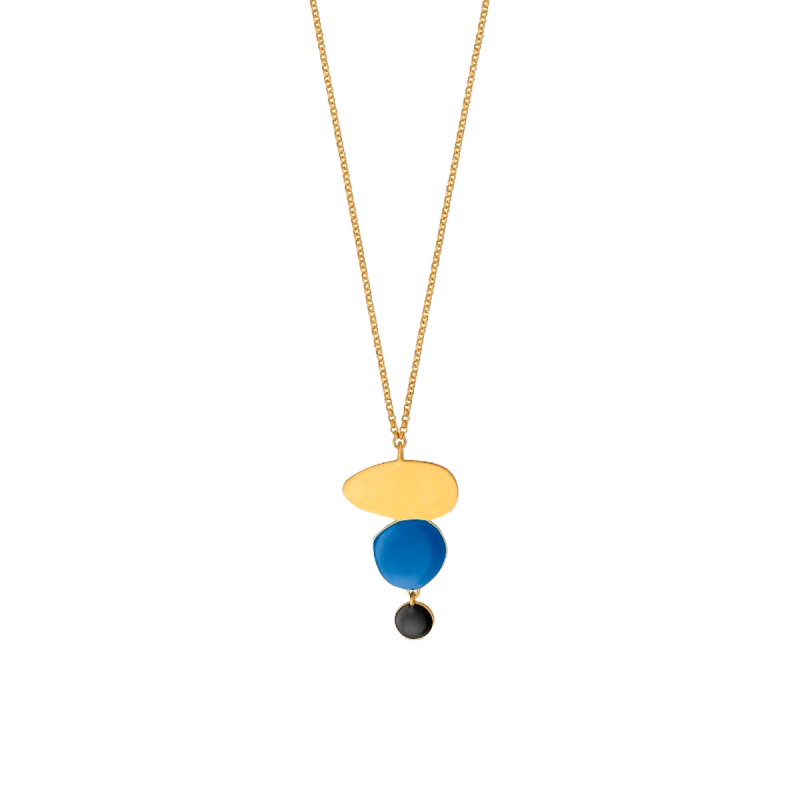 El Colgante Azul y Negro Miró, disponible en la tienda online del Museo Carmen Thyssen Málaga, rinde homenaje al universo poético y colorista de Joan Miró. Creado por Joid’art, este delicado diseño combina una cadena dorada con formas orgánicas que evocan el lenguaje visual del artista: el azul profundo del cielo mediterráneo, el negro de la noche y el dorado del sol. Es una joya que transforma la inspiración artística en elegancia cotidiana, ideal para amantes del arte contemporáneo y el diseño catalán.
